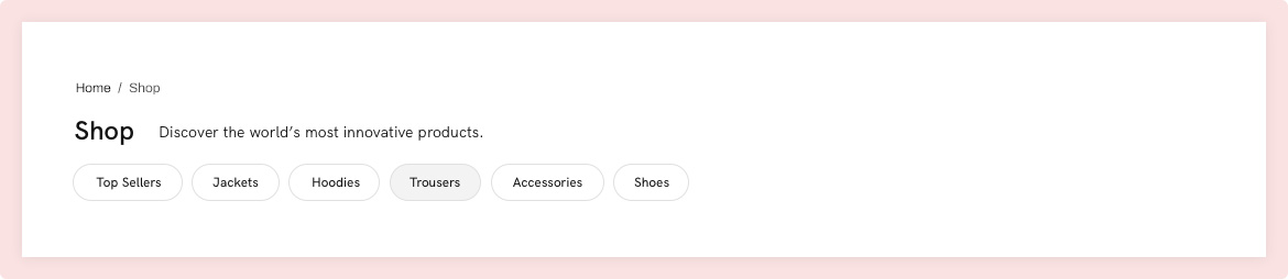 Peak Shop comes with various different shop & product category category header styles to make your site unique.