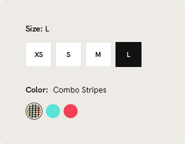 Peak Shops comes with built-in support for WooCommerce swatches, utilizing the core WooCommerce functions.